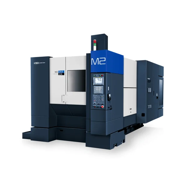 M2-5AX reduces setting time, cost, and errors of complex-shaped parts that require multiple processes by enabling the entire machining process in one-setting of the material.